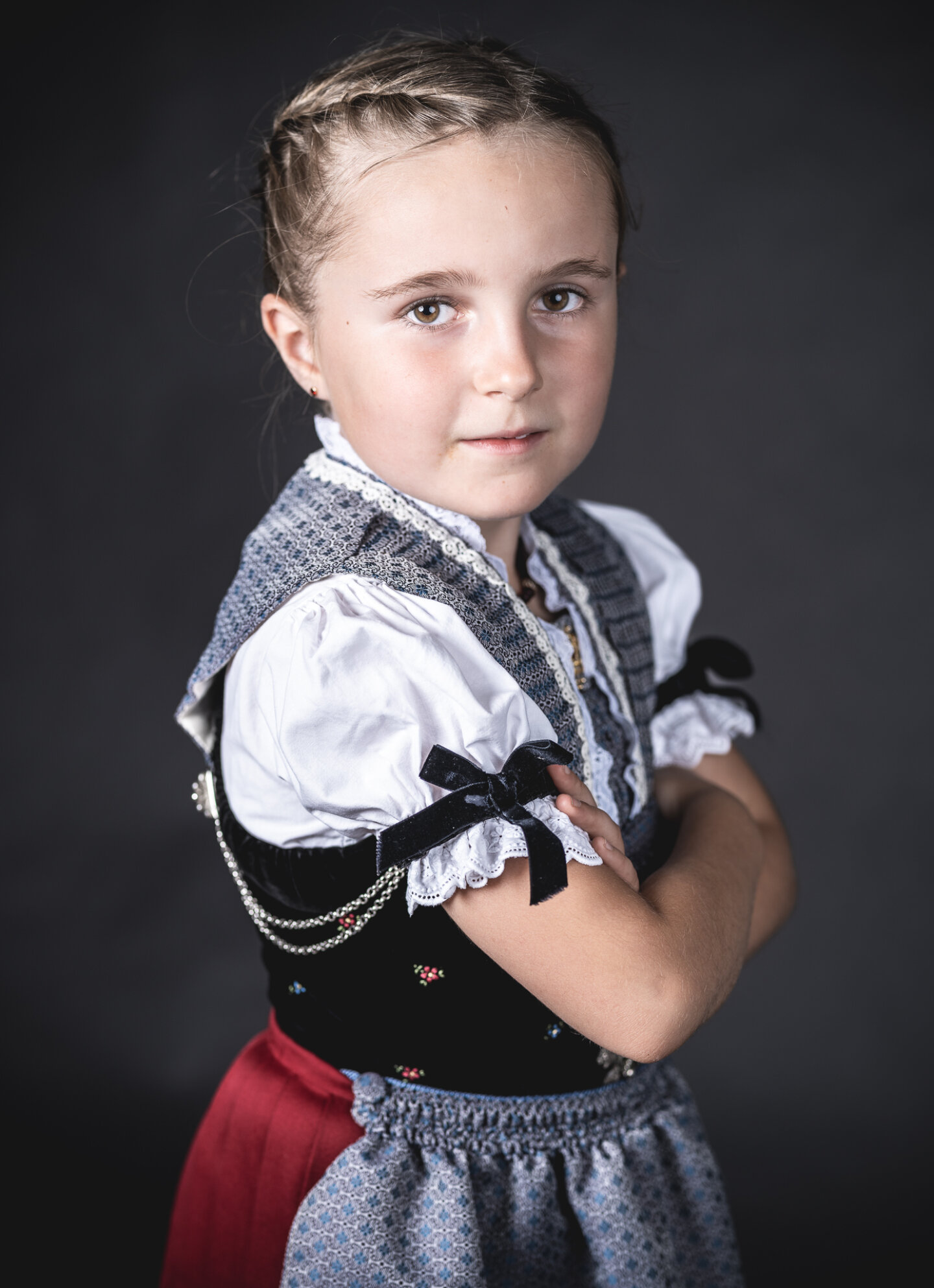 Thomas Biasotto hat sie fotografiert. Nein, nicht die Trachten, sondern die Menschen, die sie tragen – mit grosser Meisterschaft und noch grösserer Empathie. Er hat sie nicht an der Fronleichnamsprozession, beim Öberefahre, an der Stobedeoder an der Vechschau abgelichtet, sondern in seinem Studio – perfekt ausgeleuchtet, inszeniert, gestellt. Ungeschminkt stehen sie da. Im Mittelpunkt die Persönlichkeit der Trachtenträgerin und des Trachtenträgers mit ihrer bzw. seiner einmaligen Ausstrahlung. Trachtenleute, die wir alle kennen und mögen: IT-Spezialisten und Lehrpersonen, Landwirte und Rentnerinnen, Musikerinnen und Schulkinder. Und nebenbei tragen sie ihr schönstes Kleid – mit Würde und Stolz. Die Tracht wird so zur wichtigsten Nebensache, die den Blick freigibt auf derenkunstvolle und feingliedrige Details, auf die Farbenpracht und die Nuancen. Wer die lebendigen und eindringlichen Bilder von Thomas Biasotto so auf sich wirken lässt, spürt die Kraft der Tracht. Sie ist mehr als ein schönes Kleid. Sie ist Teil unseres Landes. Sie ist Heimat. Sie ist – auch dann, wenn wir sie selbst nicht tragen – e Stock vo öös.